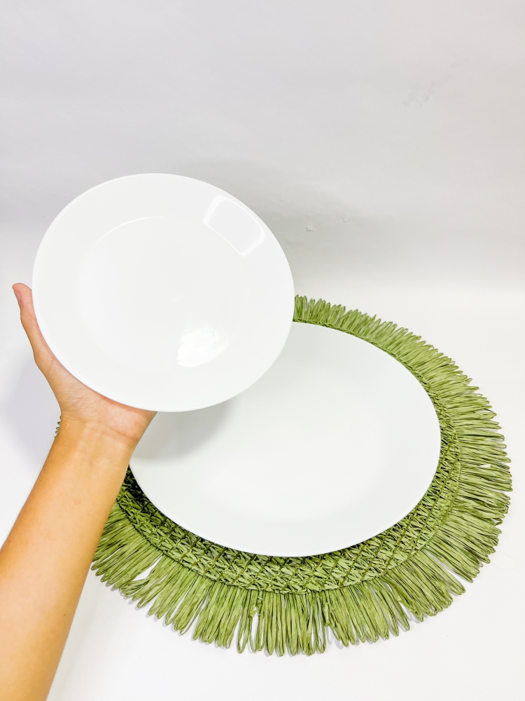 Prato de vidro branco redondo